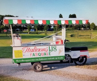 Onze roze Italiaanse Koffie & ijs bus. Zelfvoorzienend